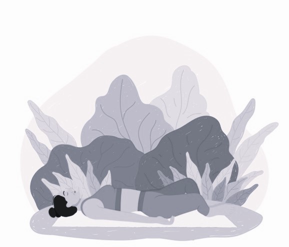 Это отличное упражнение для завершения тренировки. Всё тело расслаблено, дыхание ровное и спокойное. Полежи так пару минут, затем аккуратно, помогая себе руками, сядь на коврик. Тренировка окончена.