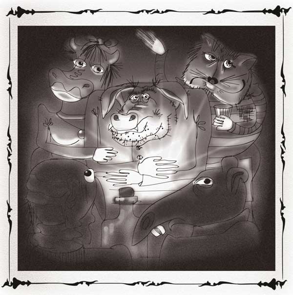 Так и потеряли они всякую надежду стать прежними, человеческими. Мало-помалу устроились на работу – кто куда: Девушка-Корова стала славной дояркой, коровы её просто обожали; Человек-Кот нанялся танцовщиком в ночной клуб, а Человек-Индюк и Человек-Крыса – охранниками в банк.