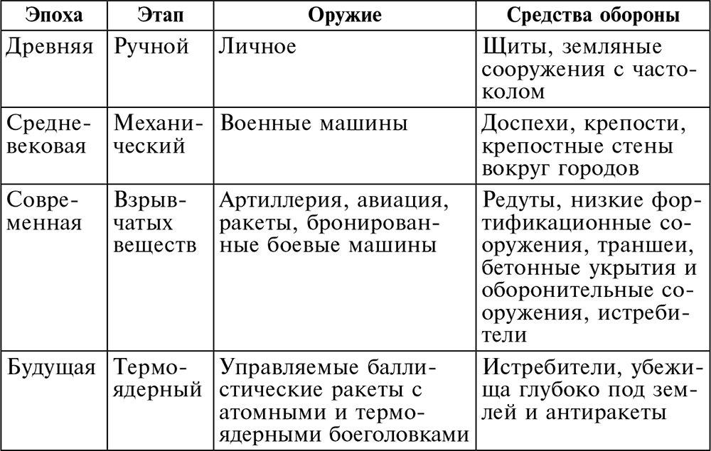 Каждая из этих четырех эпох имеет свои скоординированные системы атак и обороны, использования фортификационных сооружений одной эпохи против оружия другой эпохи на пути к всеобщей катастрофе. Свидетельством тому являются судьбы многих наших замков в период гражданской войны[3] и неадекватность хрупких японских домов перед зажигательными средствами в ходе авианалетов[4].