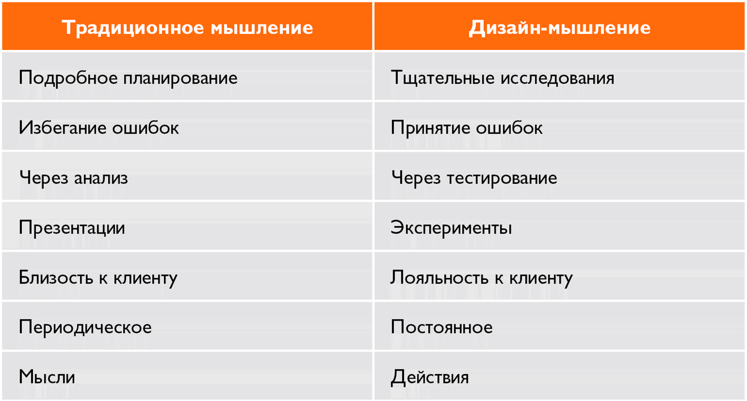 Дизайн-мышление также стало символом всех человеко-ориентированных практик в создании новых продуктов и сервисов, когда абсолютно все бизнес-процессы начинаются с ответа на самый главный вопрос: «А кому наше новое решение принесет пользу и какую?»