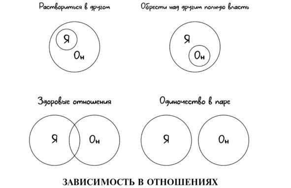 «Здоровые отношения» – это разумная автономность: у каждого есть своя жизнь, хобби, увлечения и свободное время, свои мечты и смысл жизни. И одновременно есть нечто общее, то, что объединяет, скрепляет отношения: общие цели, планы, обязанности и моменты наслаждения жизнью и поддержки друг друга.