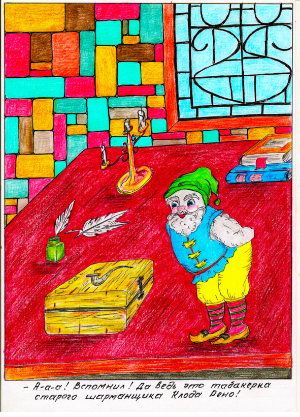 – А-а-а! Вспомнил! Да ведь это табакерка старого шарманщика Клода Рено! И как же я сразу-то не догадался? А знаете ли вы, господа, что это очень необычная и непростая табакерка? – обратился он портретам, которые с нескрываемым любопытством ловили каждое его слово.
