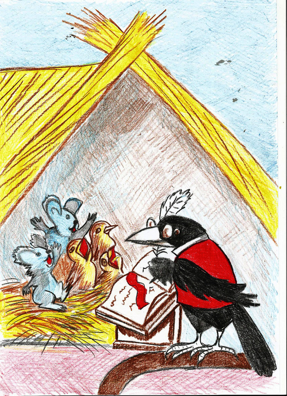 – Итак, повторите ещё раз, – доносилось с чердака требовательное карканье ворона, – кого должны опасаться в лесу мелкие животные и птицы?