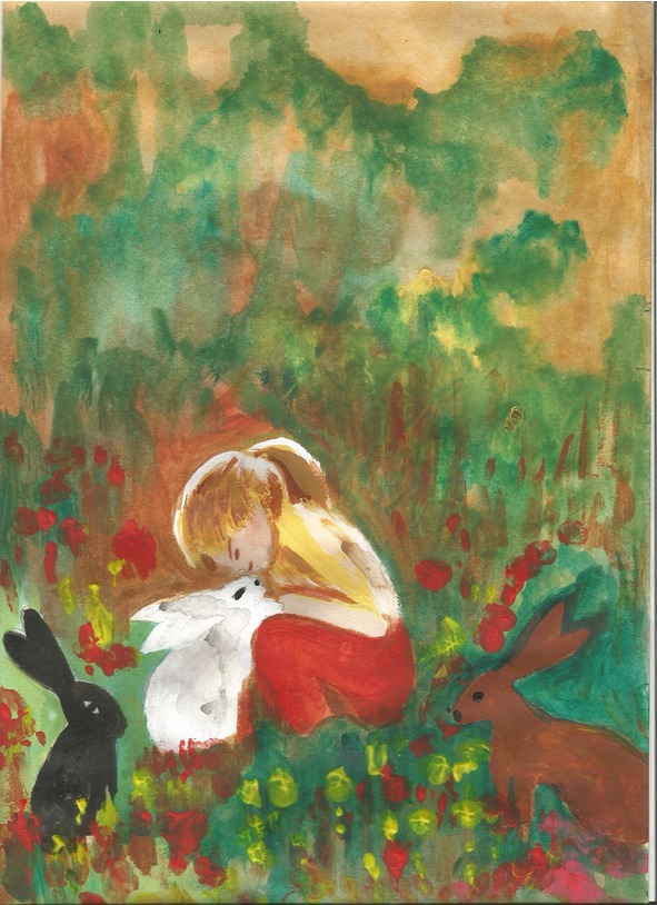 У нас три кролика живут,Они мои друзья!Я травку рву – они жуют,Люблю их очень я!Который белый и большой —Того зовут Снежок.С ним так побегать хорошо,Люблю тебя, дружок!А тот, который потемней,И маленький прыгун —У нас зовутся Тимофей,А в белой шубке – Вьюн!Как с ними весело гулять,Любимца нет средь них!Мне с ними нравится играть,Люблю я всех троих!