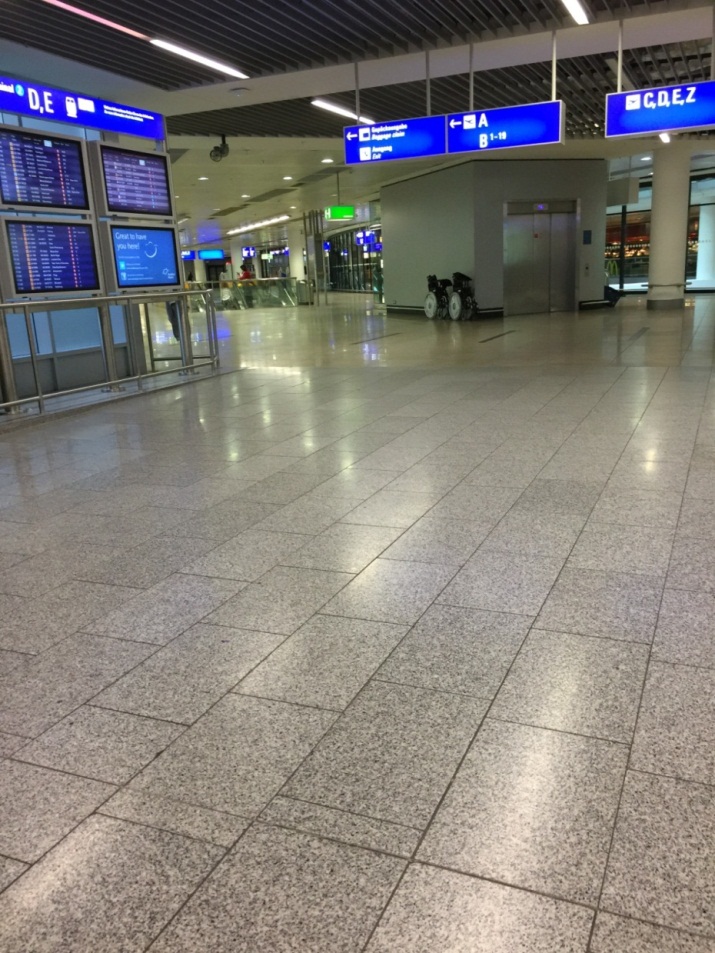 В Франкфурт прилетели ранним утром. Пасмурное небо сразу с трапа обдало холодным моросящим дождем. Долго везли на автобусе вдоль сотен гигантских самолетов и нескончаемых однообразных зданий. На выходе Игорь помог с тяжелым чемоданом пожилому немцу. Тот радостно улыбнулся и долго что-то говорил – видимо, благодарил. Как потом выяснилось, это оказался единственный радушный немец во всем Франкфурте – наверно, не местный.