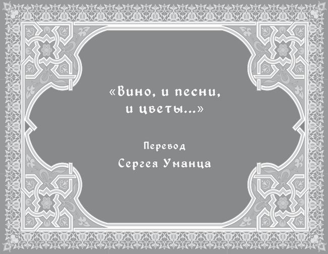 Вино, и песни, и цветы,И дев, как пери легких, ласки,И звон заздравных ваш, и пляскиНа лоне сельской простоты!Под стоны арфы, вздохи флейты,Обвеян ароматом роз,Вина янтарного испей ты,Корана не страшась угроз!Что может лучше быть на свете:Лобзаний жарких уст младых,Пирушки бражников лихихИ пьяной песни на рассвете?Друзья, да здравствует вино!В вине отрада и забвенье!Глупцу и умнику равноОно дарует наслажденье!