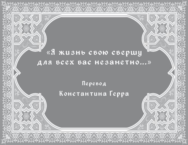 Заря встает. Встаю и, покидая ложе,Гляжу на светлый день, он мне всего дороже!Пусть струны под рукой привычное звенятИ услаждают слух, и чувства окрыляют,Жизнь не вернется к тем, в земле что ныне спят,Могилы их к друзьям опять не возвращают.О ты, всезнающий, что скрыто в глубине,На дне души людей, на дне земных могил,Приди и облегчи, хотя б в последнем дне,Возможность жизнь любить, как в детстве я любил!..Дай силы перенесть мои переживаньяИ, отрешив мой ум от суеты земной,Дай до последних дней, до часа воздыханья,Беседовать с тобой, а там… приди за мной!..«Я жизнь свою свершу для всех вас незаметно…»