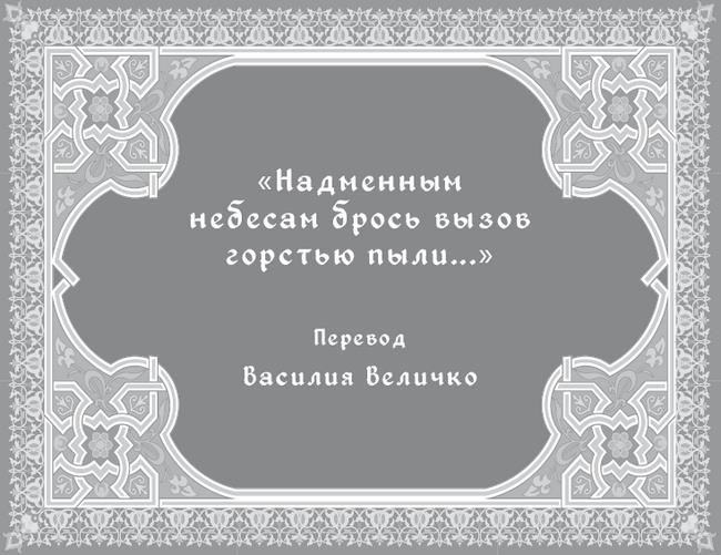 Попробуй только раз послушать мой совет:Не одеваться здесь в одежду лицемерья,Хранить обычаи, не презирать поверья, —Они на жизнь твою прольют счастливый свет.Над всяким временем могущественна вечность,Жизнь мира для людей один недолгий час,Так пусть же не продаст за миг твоя беспечностьНаследье вечности, доступное для нас.