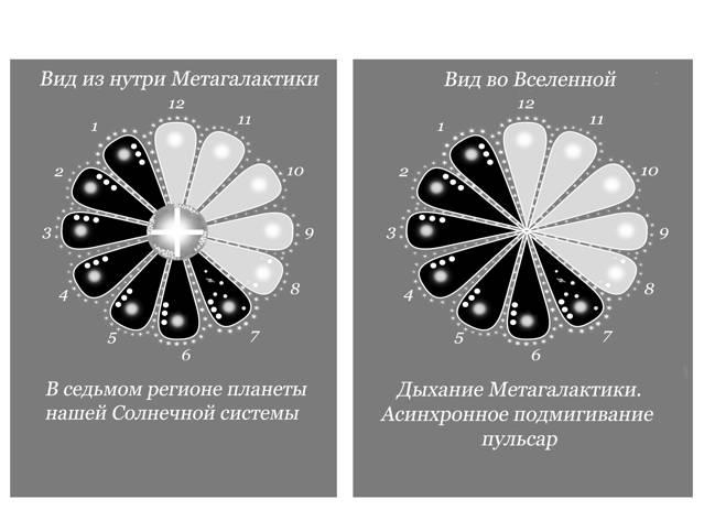Гирлянда пульсар, цепь энергии, входит в ось выше Логоса. Цепь гирлянд-проводников находятся под Крестом – Логоса и не мешает вращаться. 12 начал – это материальные вещи, подобно Логосу и гирлянде пульсар.