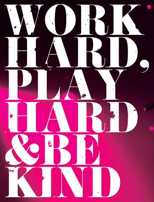 One of the mottos that I’ve learnt since I joined the band that I try to stick by is: ‘Work hard, play hard and be kind’ – because it works. In order to have a good time you have to work hard to be successful, and being kind to people should be a given. If everyone was a little bit nicer to people, the world would be a much better place. You have a choice where you can either be all right to someone or you can be a little bit nicer, and that can make someone’s day.