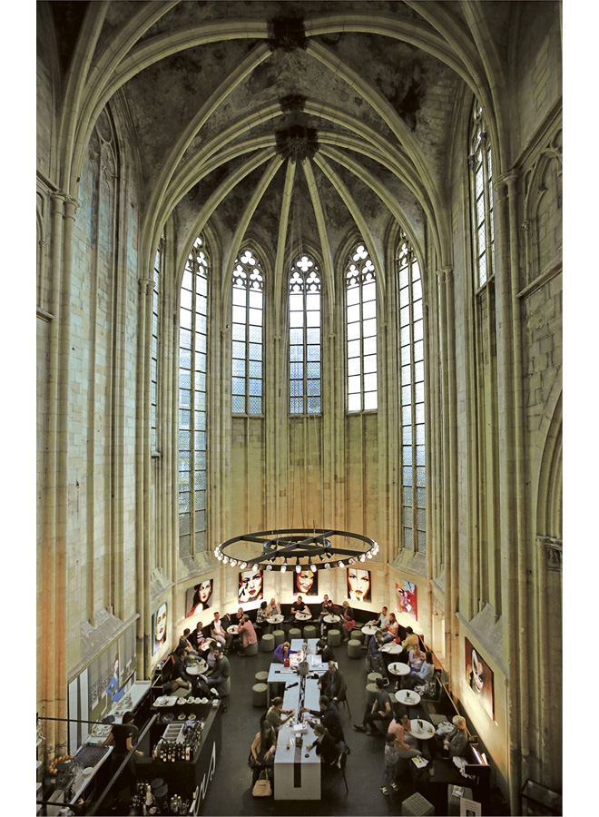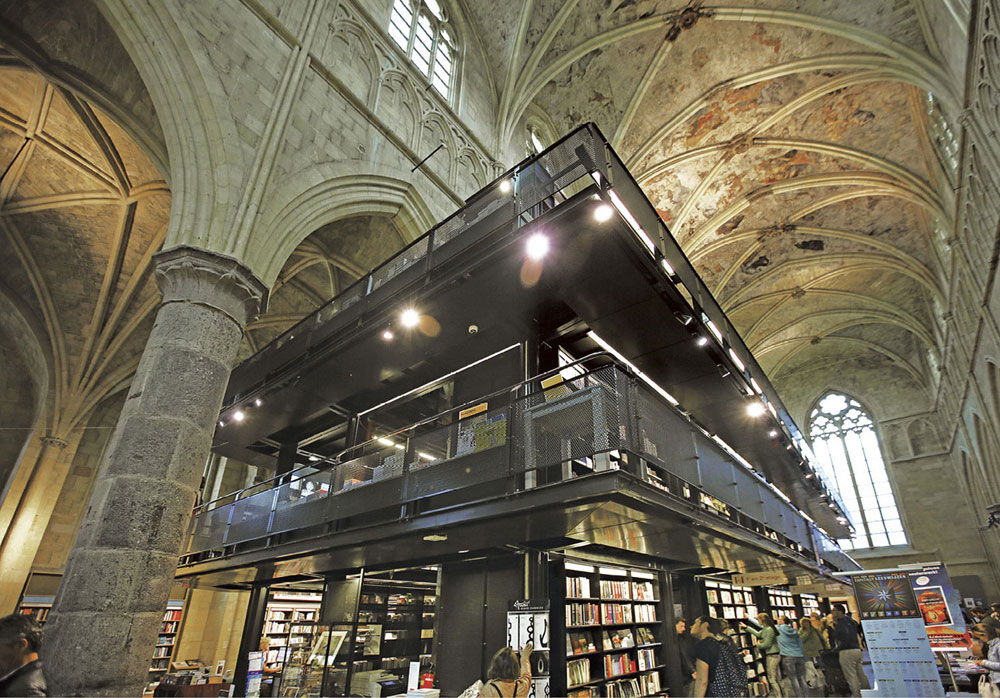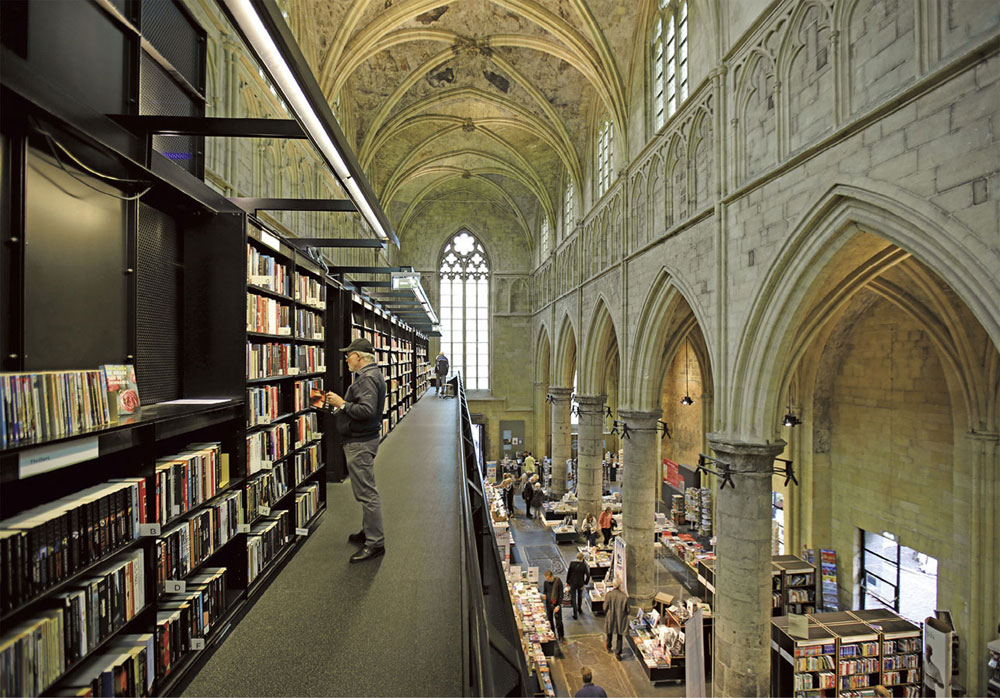 Доминиканская готическая церковь, построенная в 1294 году, превратилась в книжный магазин. Это поражающий своим величием зал 25 метров в ширину, 80 в длину и 25 в высоту, где сквозь витражи на книги проливается мягкий солнечный свет – таким образом духовность обретает новую поразительную форму.