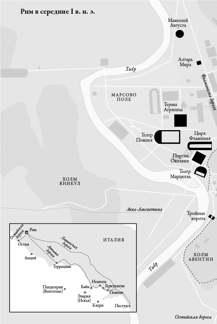 Неизгладимый след оставила эпоха Мессалины и на физическом ландшафте. Имперская элита возводила памятники, призванные противостоять разрушительному воздействию времени. Многие впоследствии стали органической частью Вечного города католической церкви: храмы старых богов стали церквями для новых, арки и колонны стали украшать палаццо знати. В других местах сохранение ландшафта Италии времен Мессалины носило более случайный характер. Извержение Везувия в 79 г. н. э. хотя и принесло несчастье жителям Помпей, словно в капсуле времени, запечатлело повседневную жизнь римских городов и вилл такой, какой она была на самом деле – а не такой, какой ее придумали для увековечивания памяти, – в середине I в. н. э.