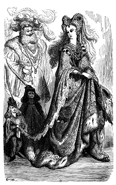 Когда наступил день, она надела подвенечный наряд, спокойно дождалась, пока ее муж отправился по делам, и пошла по улицам города искать короля. Но ей не пришлось долго бродить, потому что по приказанию Его Величества один из королевских прислужников крутился рядом с домом адвоката и, недолго думая, обратился к новобрачной, пока еще не ставшей женой: