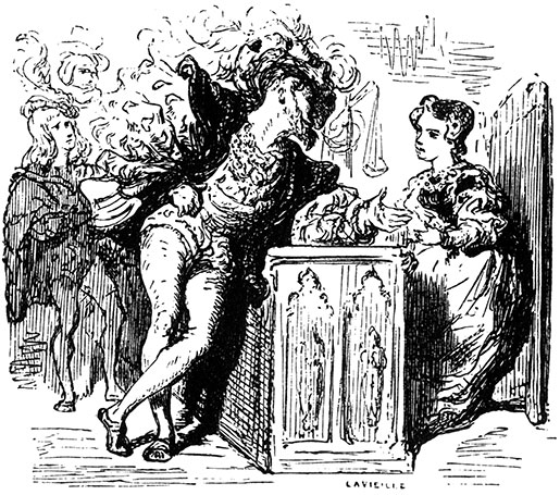 Король протянул свой маленький кинжал девице, чьи слова вскружили ему голову до того, что он потерял всякую охоту к еде и питью. Он стал готовиться к переезду, желая поселить свою новую зазнобу на улице Ласточки, в одном из своих особняков.