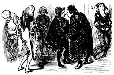 При этих словах скряги, хоть и не в силах были оторвать глаз от кучи золота, начали искоса поглядывать друг на друга, и гости скоро поняли, что эти старые обезьяны по части кривлянья всех превосходят, ибо физиономии у них стали почти так же забавны, как у кошки, лакающей молоко, или как у девицы перед свадьбой.