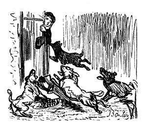 Король часто встречался в ее доме со своими добрыми дружками-приятелями, а чтобы никто его не видел, приходил туда по ночам, тайком. Но поскольку Людовик был подозрителен и боялся засады, он дал Николь самых злобных собак из своей псарни и стражников, готовых разорвать любого без предупреждения, и признавали эти псы только Николь и короля. Когда Его Величество входил в дом, Николь выпускала собак в сад, дверь в дом закрывалась крепкой решеткой и надежными запорами, король прятал ключи в свой карман, чувствовал себя в полной безопасности и, не боясь ни измены, ни предательства, как хотел забавлялся, проказничал и устраивал розыгрыши. В такие ночи кум Тристан наблюдал за соседними улицами, и тот, кому взбредало в голову после заката прогуляться по набережной, если не было у него на ту прогулку королевского дозволения, очень быстро оказывался в положении того несчастного, что с веревкой на шее благословляет прохожих своими пятками.