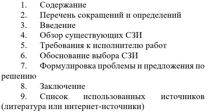 В данном разделе обучающемуся необходимо привести существующие виды СЗИ для своего варианта с кратким описанием их функций, наличием сертификатов; охарактеризовать такие возможности, как характер технической поддержки от производителя, ценовая политика, и другие дополнительные аспекты при выборе СЗИ. Необходимо привести не менее трех различных СЗИ.