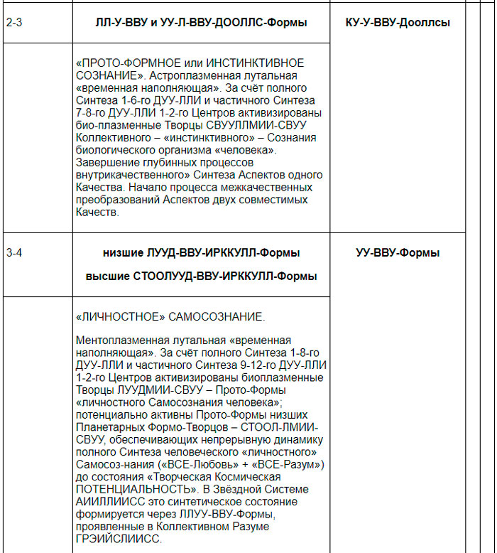 2. – ввуурротортный – «ввуурр»-Уровень, от 0,0 до +8,0 мерности, астральные ВВУУРРОТОРТ-Творцы в содружестве с каузальными ИФФРАММИРСС-Творцами – ввуурроторты;
