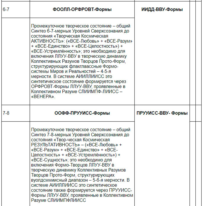 7. – ааргссрууфтный – «ааргс»-Уровень, до +9,0 мерности, 12-й, ДУУ-ЛЛИ астральные ААРГС-СРУУ-Творцы в содружестве с каузальными ЕЙЙЕЕЙГСС-Творцами – ааргссруусты.