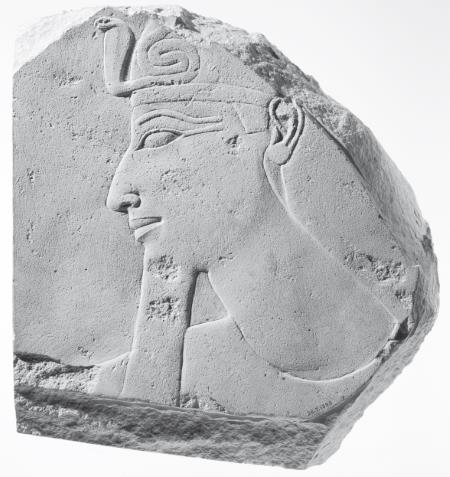 Этот прекрасный рельеф Тутмоса III, вероятно, произошел из его храма в долине. На нем изображен царь в головном уборе ката с очень угрожающим извивающимся уреем на лбу. Ок. 1458–1425 гг. до н. э. Тутмос III также построил погребальный храм на скалах Дейр-эль-Бахри в Фивах, рядом с храмом Хатшепсут, с которой он разделял царствование на протяжении части своего правления