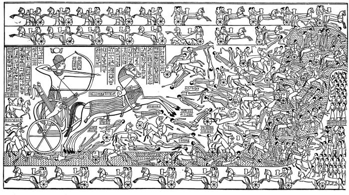 Батальная сцена с рельефов Великого Кадеша Рамзеса II на стенах Рамессеума. XIII в. до н. э.