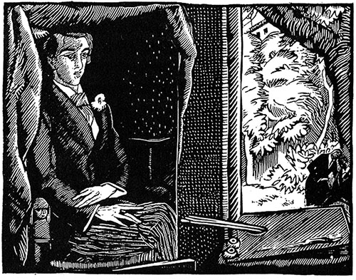 Художник смотрел на прекрасного юношу, с таким искусством отображённого им на портрете, и довольная улыбка не сходила с его лица. Но вдруг он вскочил и, закрыв глаза, прижал пальцы к векам, словно желая удержать в памяти какой-то удивительный сон и боясь проснуться.