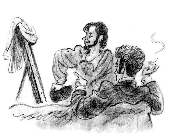Suddenly the painter appeared at the door and waved at them to come in. They turned to each other and smiled.