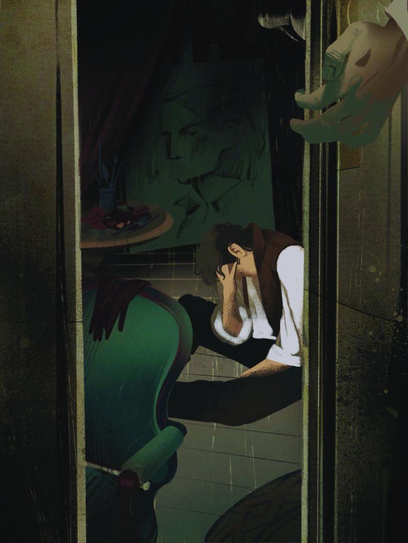 As the door closed behind them, the painter flung himself down on a sofa, and a look of pain came into his face.