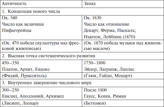 И вот теперь на этой высочайшей вершине (исчерпав все свои внутренние возможности и исполнив свое предназначение – быть слепком и чистейшим выражением идеи фаустовской душевности) завершается развитие западной математики – в том же самом смысле, в каком это произошло с античной математикой в III в. Обе эти науки (единственные, чья органическая структура все еще может быть исторически прослежена в наше время) возникли из принадлежавших Пифагору и Декарту концепций совершенно новых чисел; столетием позднее обе, пройдя через великолепный взлет, достигли зрелости, и обе, пройдя через рассвет продолжительностью в три столетия, завершили здание своих идей, – в то же самое время, когда культура, к которой они принадлежали, перешла в цивилизацию мировых столиц. Эта полная глубокого смысла взаимосвязь будет прояснена впоследствии. Несомненно то, что время великих математиков для нас миновало. Ныне происходит та же самая работа по сохранению, закруглению, совершенствованию, отбору – т. е. исполненная таланта мелочная работа взамен великих творений, – что и является характерной особенностью александрийской математики позднего эллинизма.