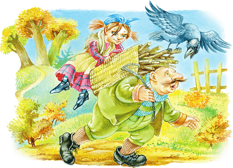 – Матушка! – сказал он. – Если ты очень устала, то садись на корзину верхом, я и тебя отнесу.