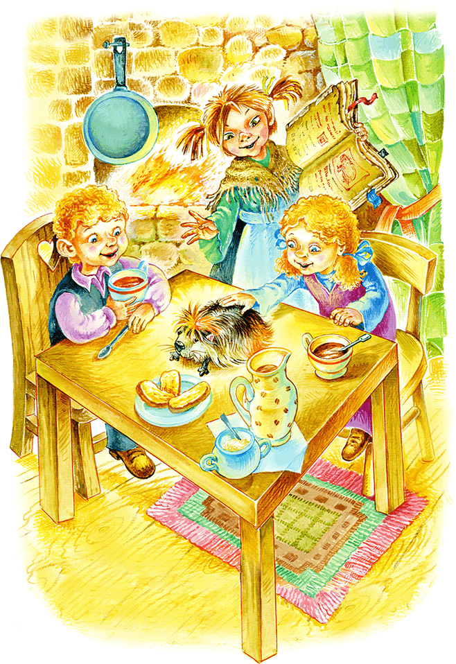 – Ура! – вскрикнула она весело. – Мы сейчас же вылетаем в трубу! И посмотрим, не пригодится ли где-нибудь наше колдовство!
