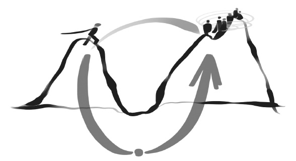 Моя коллега и соучредитель Presencing Institute (Институт чувствующего присутствия) Келви Берд очень хорошо показала это расплывчатое ощущение на картинке с пропастью (см. рис. 1).