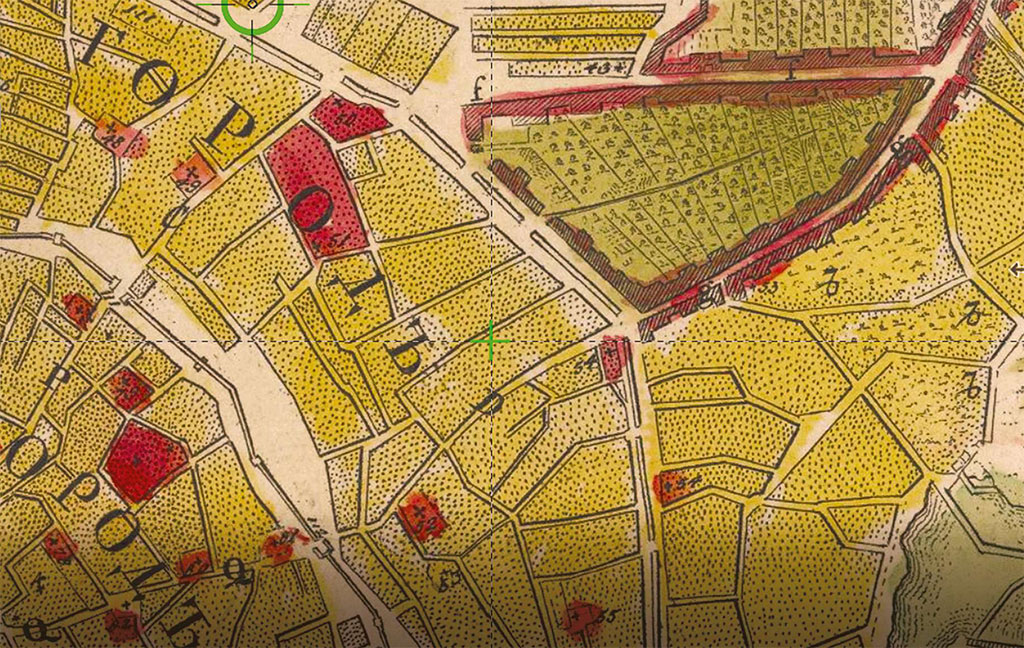 Место улицы Машкова на плане Москвы 1739 г. Автор: Иван Мичурин. Источник: Retromap