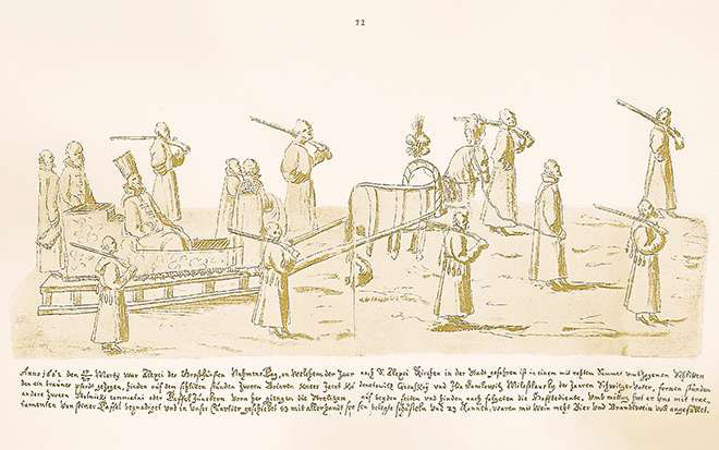 Выезд царя Алексея Михайловича в санях. Гравюра из альбома А. Мейерберга