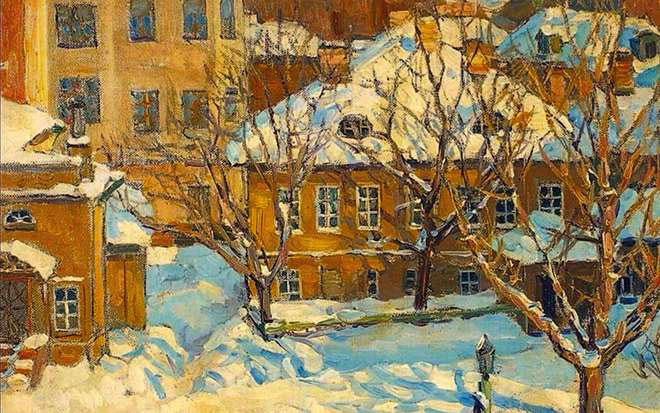 А. Васнецов. Московский дворик зимой (вид из дома № 6 по Фурманному переулку в сторону Доброй слободки – улицы Машкова). 1920-е гг. Государственная Третьяковская галерея