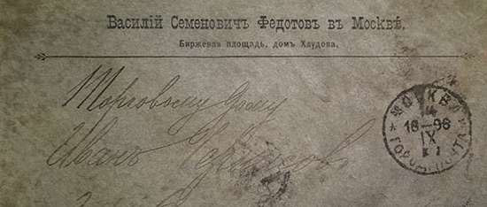 Конверт фирмы «В.С. Федотов и K°». 1896 г. Частное собрание