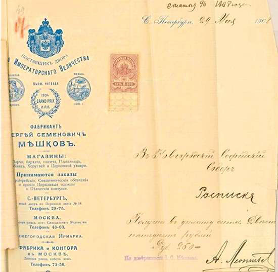 Фирменный бланк фабриканта С.С. Мешкова. Источник: Новгородский музей-заповедник, Великий Новгород
