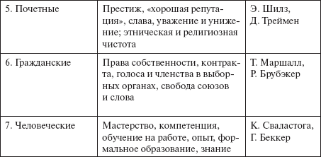 Скрытое утверждение, лежащее в основе табл. 3.1, состоит в том, что перечисленные блага, ресурсы исчерпывают все основные существующие варианты (другими словами, «сырье») для построения стратификационных систем.