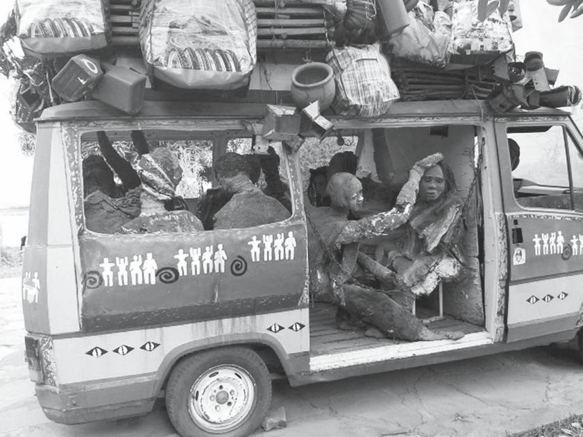 Илл. 7. Инсталляция во дворе Национального музея в Бамако. Мы с Бокари Гиндо назвали её «Зомби-такси»