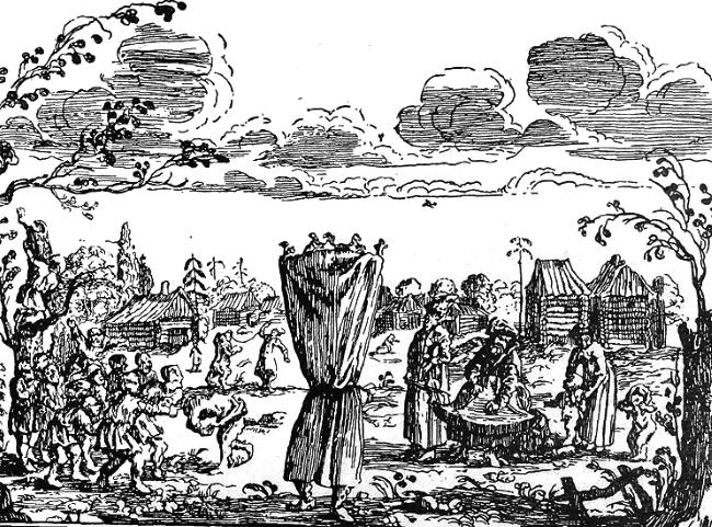 * * *Совсем иначе смотрит на описанное выше автор исследования «Иван Грозный без лжи» Н. М. Пронина: «А ведь цвела весна, май месяц, и ввиду отсутствия неприятеля (крымцы, прознав о выступлении русских войск к южным границам, отложили свой поход на Русь) Иван просто взялся вместе с окрестными жителями пахать вешнюю пашню, сеять гречиху. А ещё… ещё он, смеясь, вышагивал с гурьбой деревенских парней на высоких ходулях, шутил, „обряжаясь в саван", дабы в какой-нибудь потехе изобразить привидение.