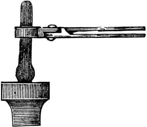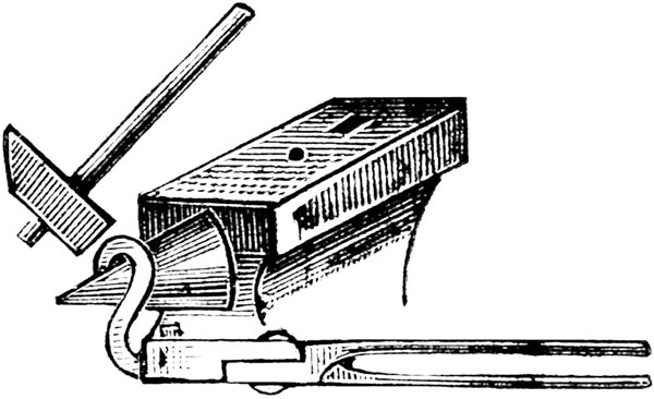 Гнутие колец. Изгибание всякого рода кривых поверхностей (крючков, колец и т. п.) обыкновенно производится на роговом отростке наковальни, если предметы имеют грубую форму (рис. 35). Более тщательная отделка, а также гнутие колец производятся или при помощи оправок, круглых и овальных стержней, или же посредством особых специальных приспособлений.
