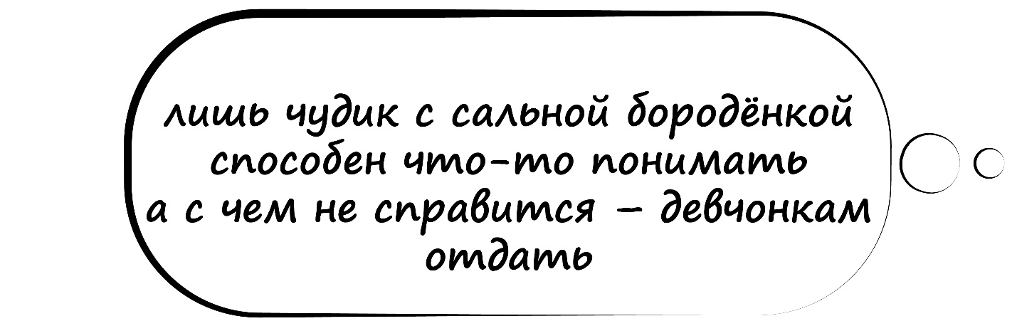Во-вторых, даже традиционно ориентированные гении частенько довольно плохо приспособлены к семейной жизни. Не будем показывать пальцем, но вот один известный математик, например, живущий в нищете на мамину скромную пенсию в маминой же скромненькой квартирке, однажды просто взял и отказался от огромной суммы денег, заработанной честным трудом. Ну, потому что в его понимании мира продукты в холодильнике самозарождаются волшебным образом, счета за коммуналку – это просто какие-то крохотные абстрактные циферки, на которые скучно смотреть, а как там выкручивается его мама, сводя в домашней бухгалтерии дебет с кредитом, он искренне не замечает, потому что занят проблемами более насущными: поисками решений нерешаемых уравнений, например. Кто из нас хочет иметь мужчину, способного заработать миллионы собственным умом? Лес рук! И я с вами рядом постою тоже, девочки. Кто из нас хочет иметь мужчину, который способен заработать эти миллионы собственным умом, но не способен поднять задницу со стула, чтобы сходить и получить их? Что? Тишина в зале, да? И только мёртвые с косами… И стрёкот сверчков… Вот то-то и оно…