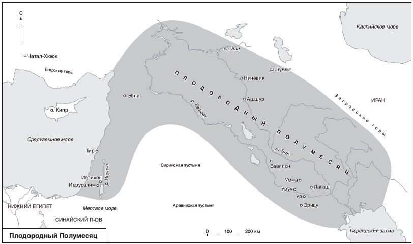 Так что люди, которые первыми поселились здесь, построили себе тростниковые хижины у края воды, распахали поля, чтобы взрастить пшеницу и ячмень, разбили сады, чтобы выращивать овощи и финиковые пальмы, вывели своих животных пастись в степь, не выбирая себе путь наименьшего сопротивления. Если бы они хотели легкой жизни, они организовали бы свои поселения там, где достаточная ежегодная сумма осадков упрощает сельское хозяйство за невидимой линией, устанавливающей границу региона, в котором каждый год выпадает более 200 мм осадков, – географы называют ее изогиетой 200 мм. Эта линия изгибается огромным полукругом от подножия Загросских гор на востоке, проходит мимо Таврских гор на севере и выходит к средиземноморскому побережью на западе, образуя фигуру, которая подсказала американскому археологу Джеймсу Генри Брестеду назвать ее Плодородным Полумесяцем. В Южной Месопотамии внутри этого изгиба за год почти не выпадают никакие осадки. Здесь у пришедших сюда людей были только реки для полива своих посевов, но, чтобы даже организовать его, им пришлось сначала изменить саму землю с помощью плотин, сточных канав, рвов, водохранилищ и каналов.