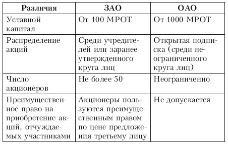 Деятельность ЗАО и ОАО имеет существенные различия (табл. 1).