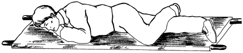 Голова при этом отгибается назад. Желательно уложить больного на правый бок, так как при этом менее выражены нарушения кровообращения и дыхания (если только у него не повреждена правая половина грудной клетки!).