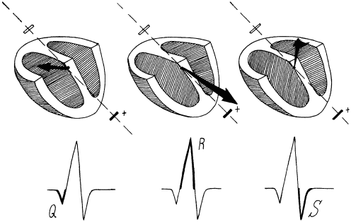 Рис. 7. Формирование зубцов Q, R и S на ЭКГ