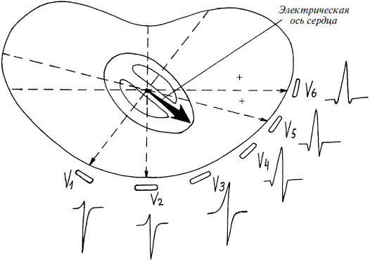 Рис. 10. Формирование ЭКГ в грудных отведениях