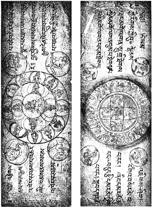 Слева: Бардо Тхёдол. Лист рукописи № 35а