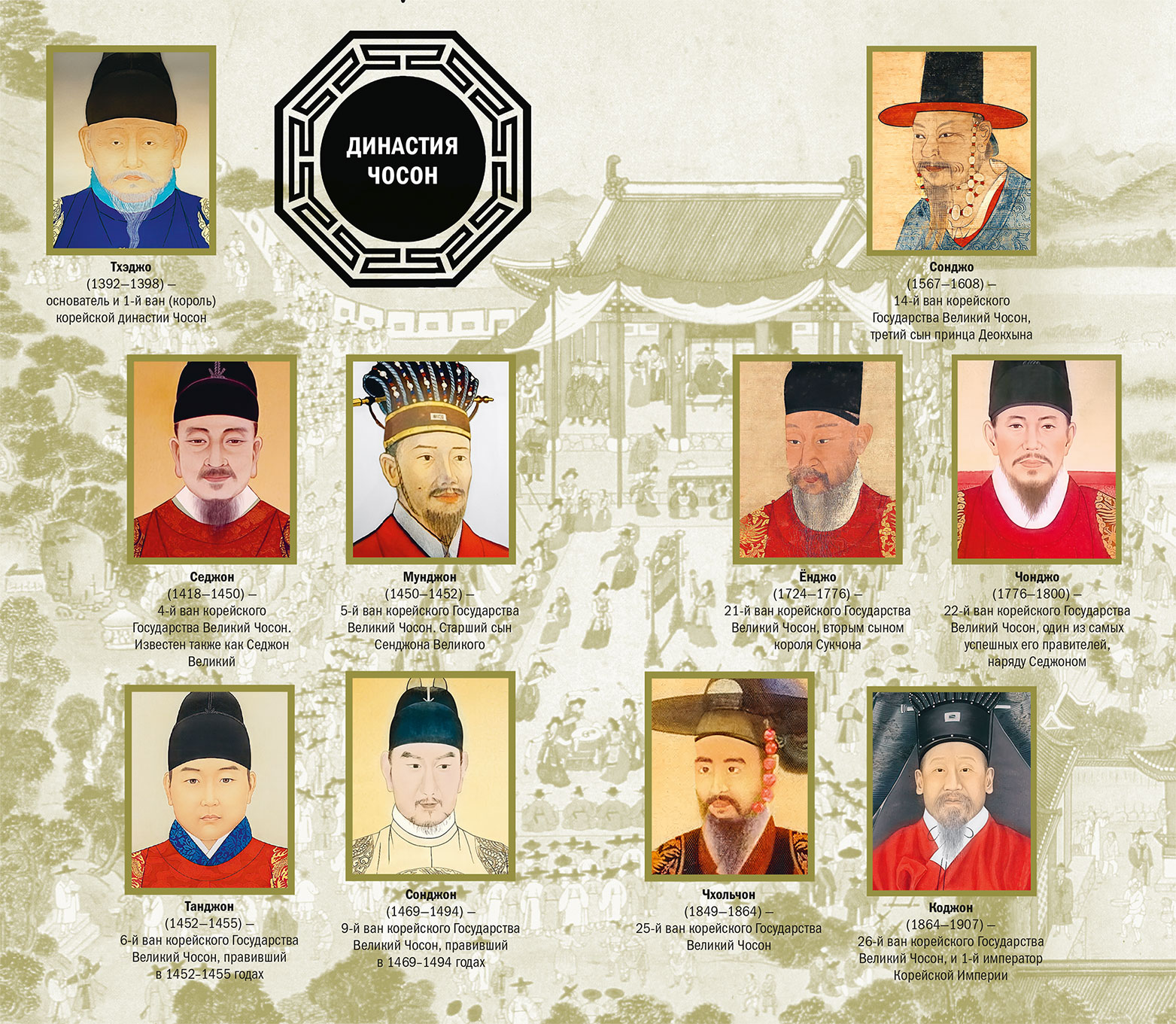 Мы уделим внимание каждому из правителей Чосон, никого не обойдем и не забудем. Один рассказ получится длинным, а другой коротким, но ни одной страницы пропущено не будет, состоится знакомство с каждым государем, и в завершение чтения вы получите полное представление о самой великой из корейских правящих династий.