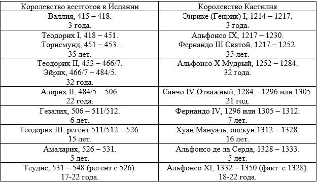 Таким образом, соответствие для вестготских королей может выглядеть так: